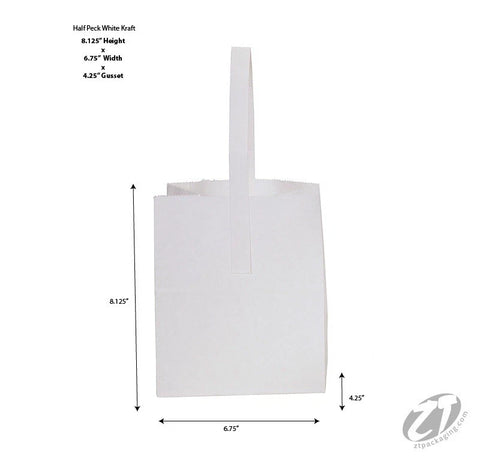 For your consideration is a brand new 500 quantity packed case of 1/2 Peck White 50# Apple Bags measuring 6.75" x 4.25" x 8.125".